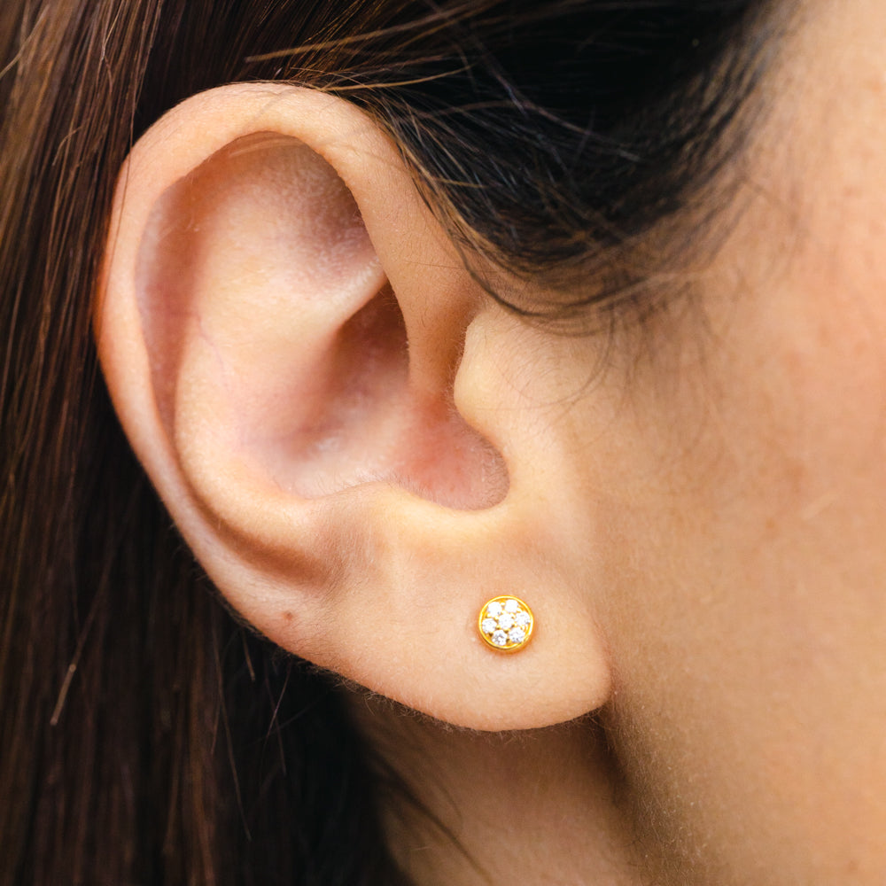 Whether you go casual or dress up, our Pavé Diamond Studs level up any look. Crafted in 14k solid gold with 14 pavé set diamonds. It's your time to shine.